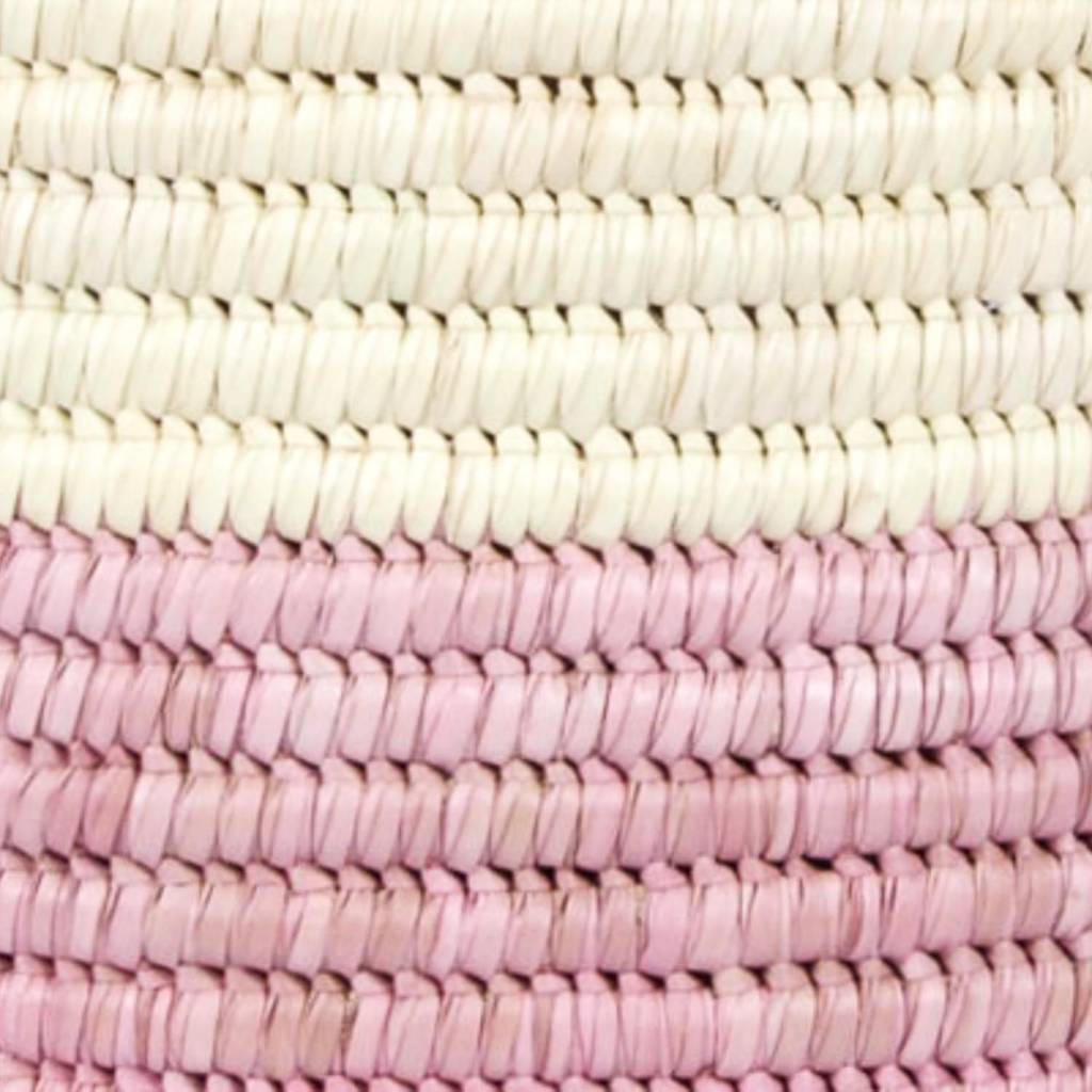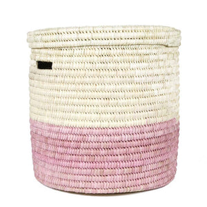 These beautiful colour block laundry baskets are woven from doum palm leaf in Uganda and boast a broad, raspberry pink band to the lower section.