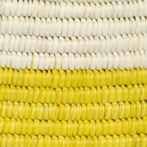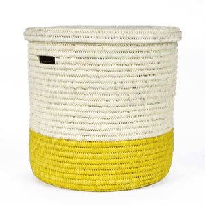 These fabulous laundry baskets with colour blocking in sunflower yellow or burnt orange are woven from robust doum palm in Uganda