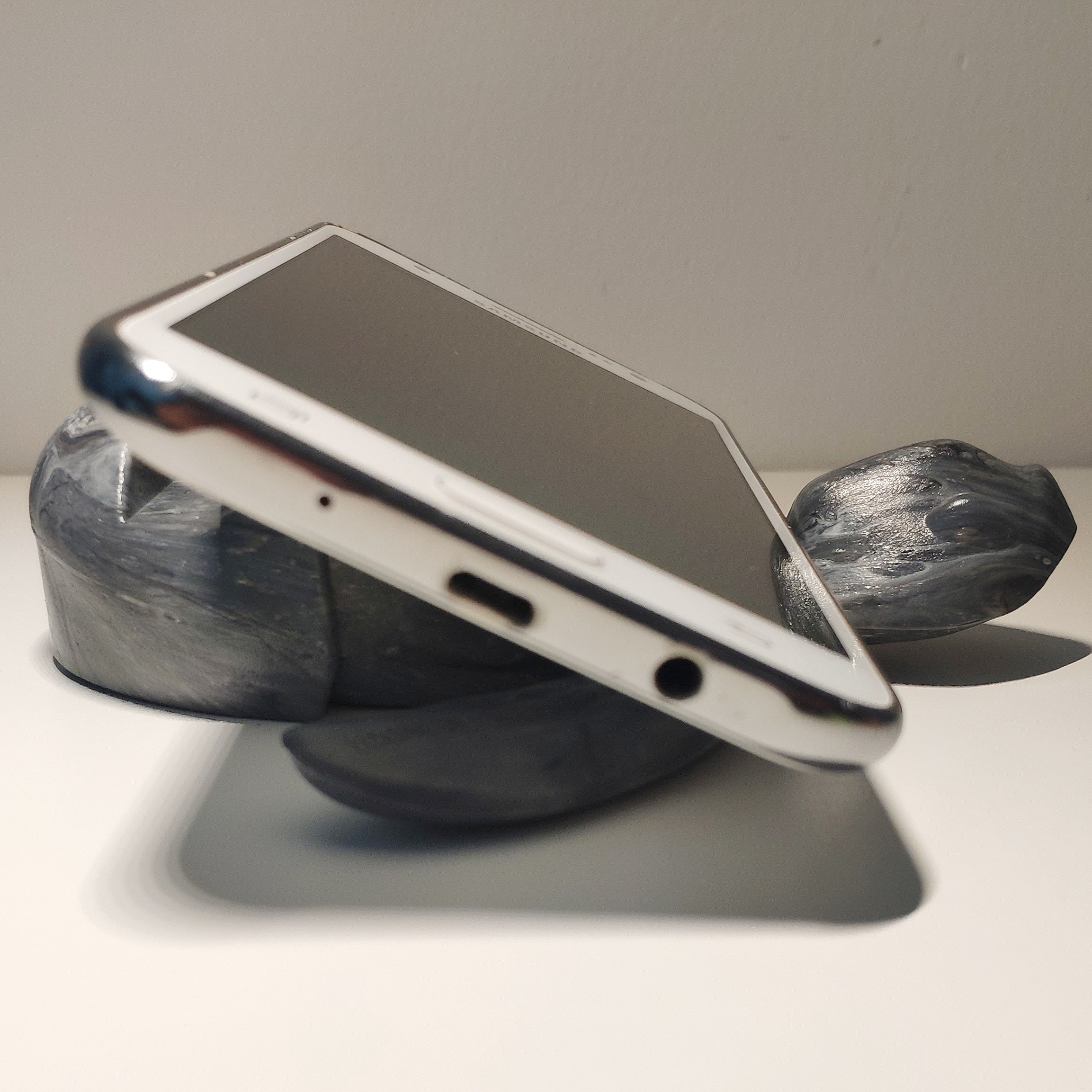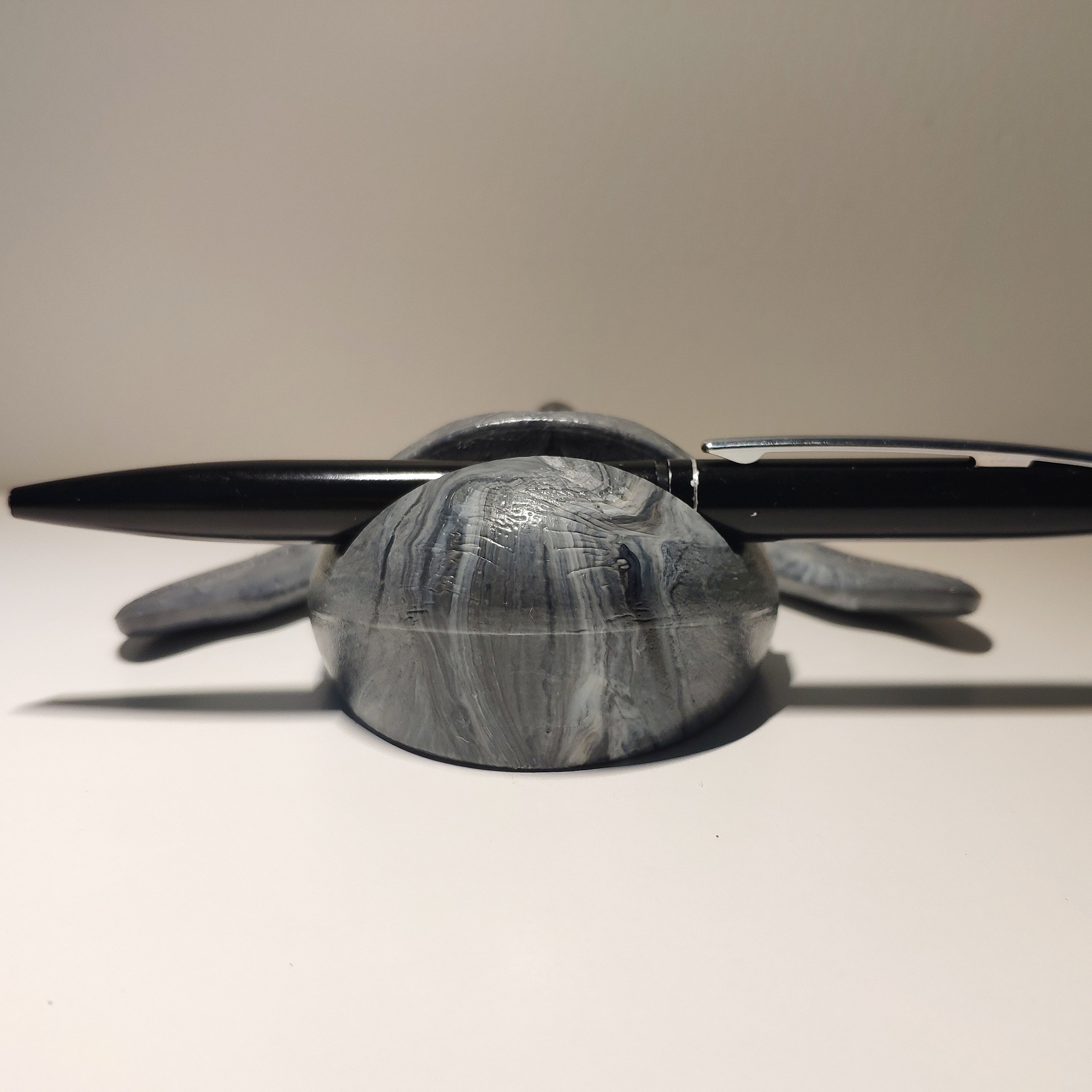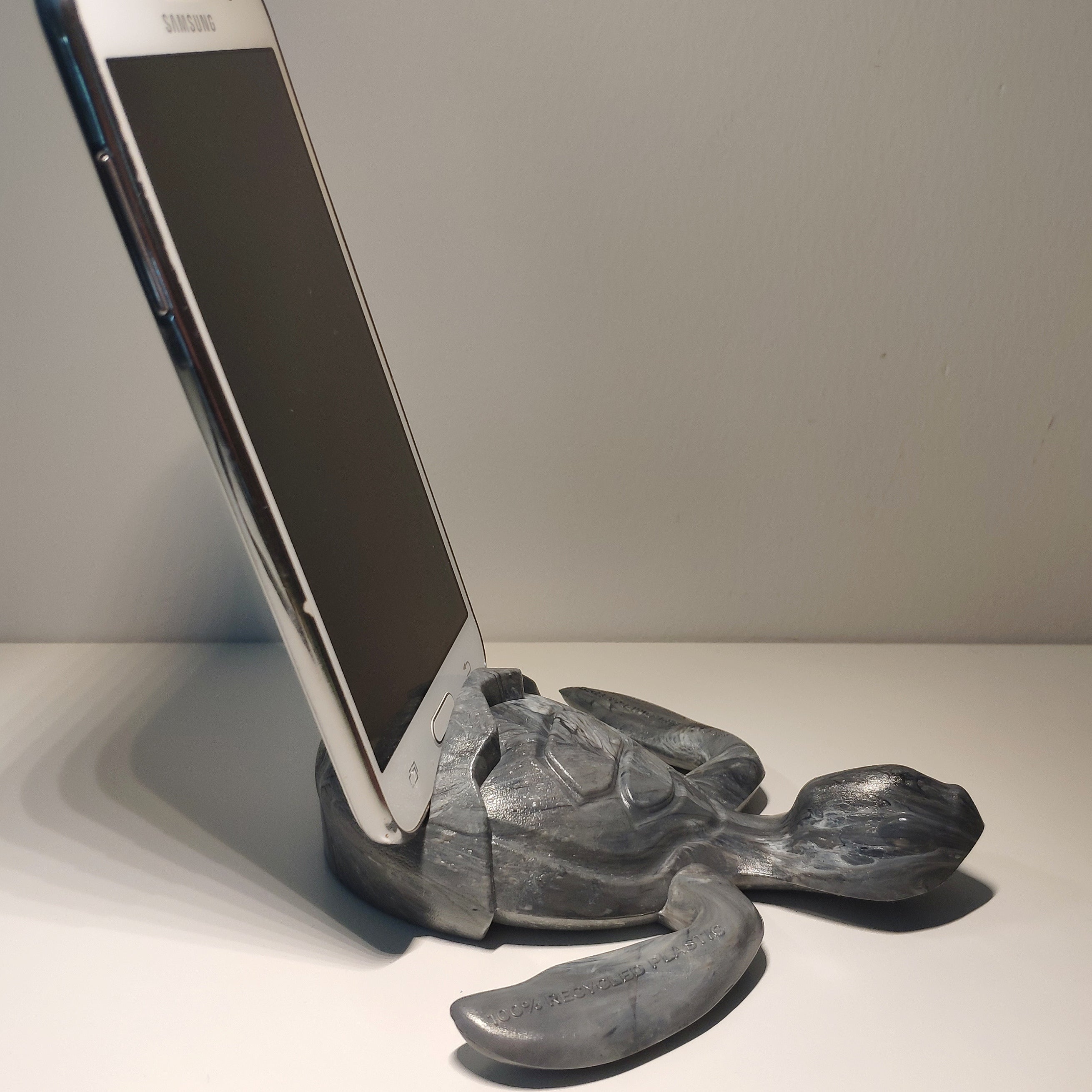 Black-Grey Baby Sea Turtle Holder that allows to hold phones (*), glasses, business cards, pens and others.