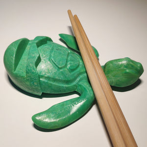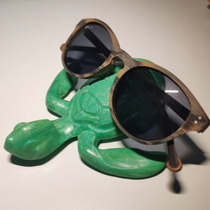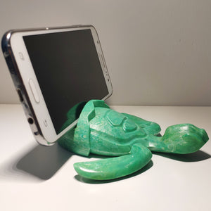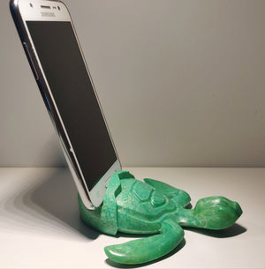 Dark Green Baby Sea Turtle Holder that allows to hold phones (*), glasses, business cards, pens and others.
