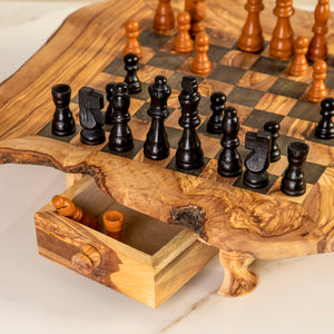 Handcrafted Olive Wood Chess Set with Drawers and Legs for Home Decor
