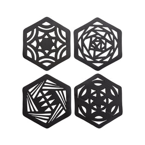 Hexagon Handcrafted Recycled Rubber Coaster - A set of 2 or 4