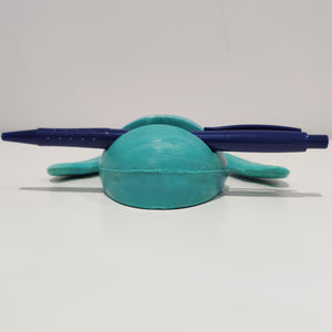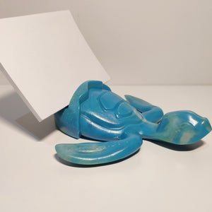 Light Blue Baby Sea Turtle Holder that allows to hold phones (*), glasses, business cards, pens and others.