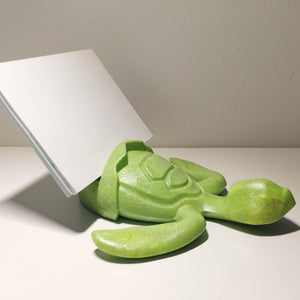 Light Green Baby Sea Turtle Holder that allows to hold phones (*), glasses, business cards, pens and others.
