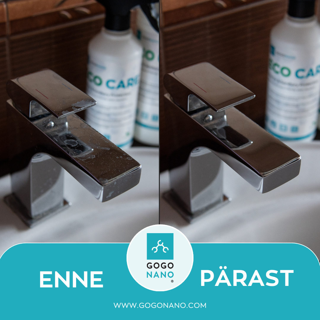 GoGoNano EcoDescaler is a limescale remover that combines nanotechnology with descaling properties to clean surfaces and protect them from future mineral buildup.