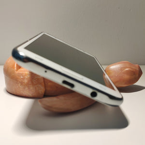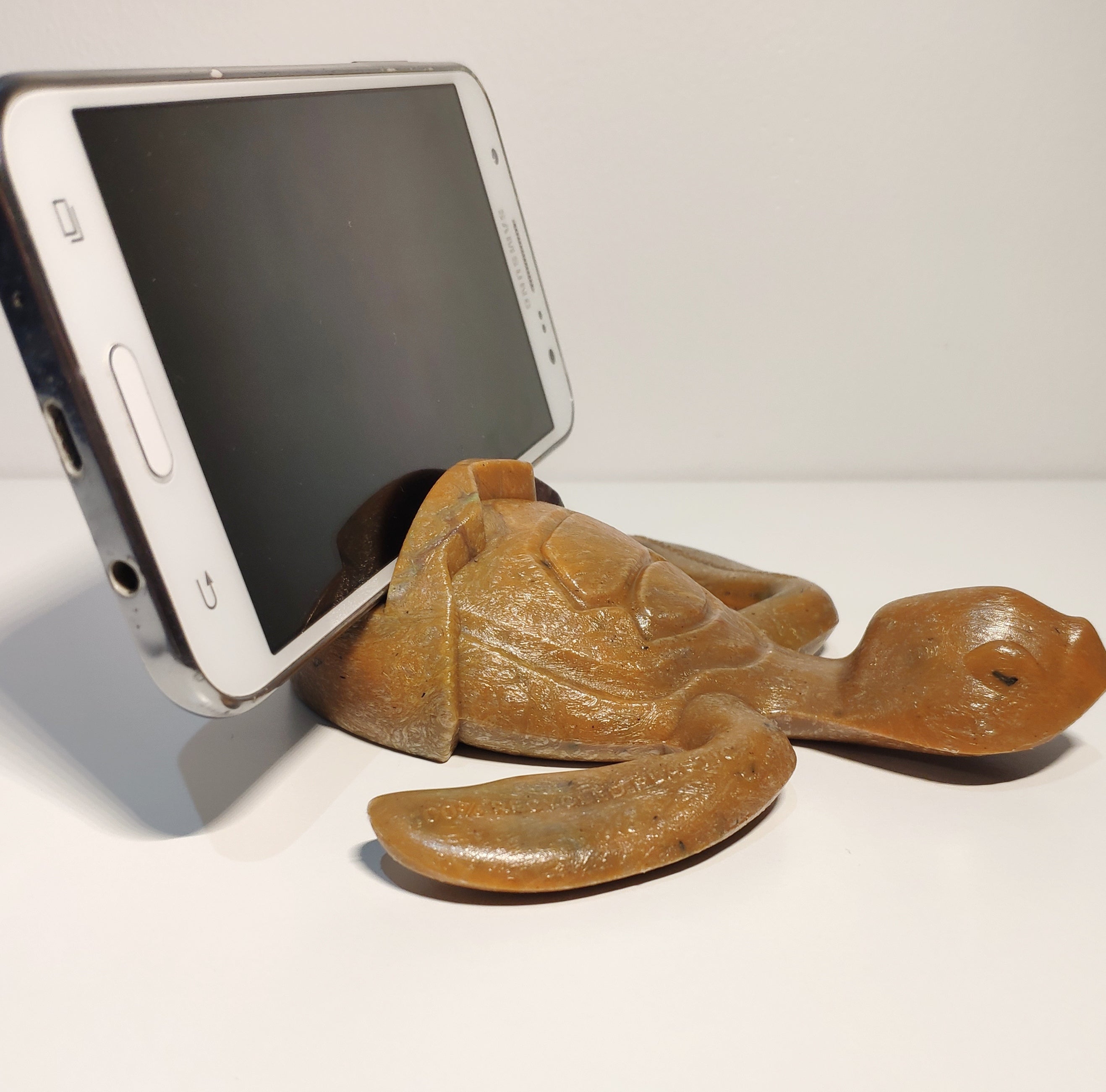 (*) Phones wider than 11mm will not fit in the holding gap. However, wider phones can be reclined on the top of the Baby Sea Turtle Holder as the neck has been designed to give support in this position.