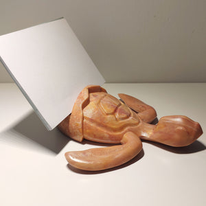 Orange Baby Sea Turtle Holder that allows to hold phones (*), glasses, business cards, pens and others.