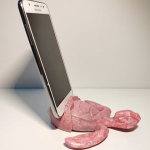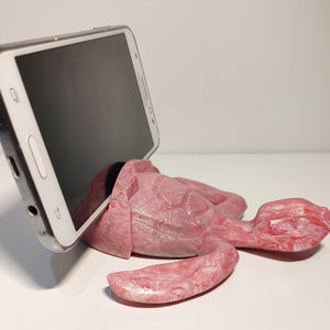 Pink Baby Sea Turtle Holder that allows to hold phones (*), glasses, business cards, pens and others.