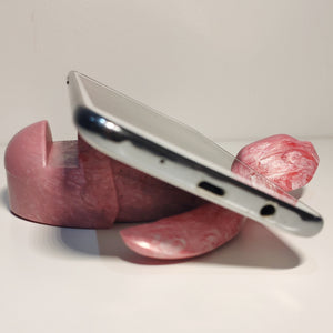 (*) Phones wider than 11mm will not fit in the holding gap. However, wider phones can be reclined on the top of the Baby Sea Turtle Holder as the neck has been designed to give support in this position.