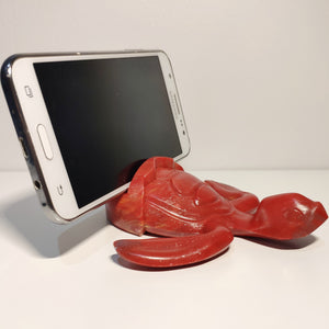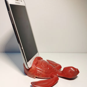 Red Baby Sea Turtle Holder that allows to hold phones (*), glasses, business cards, pens and others.