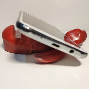 (*) Phones wider than 11mm will not fit in the holding gap. However, wider phones can be reclined on the top of the Baby Sea Turtle Holder as the neck has been designed to give support in this position.