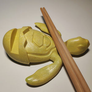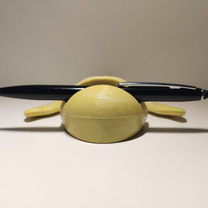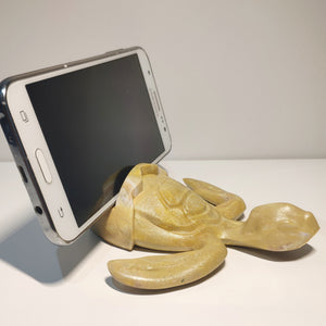 Yellow Baby Sea Turtle Holder that allows to hold phones (*), glasses, business cards, pens and others.