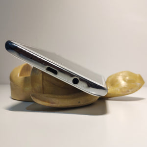 (*) Phones wider than 11mm will not fit in the holding gap. However, wider phones can be reclined on the top of the Baby Sea Turtle Holder as the neck has been designed to give support in this position.